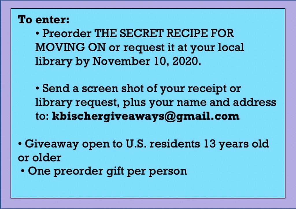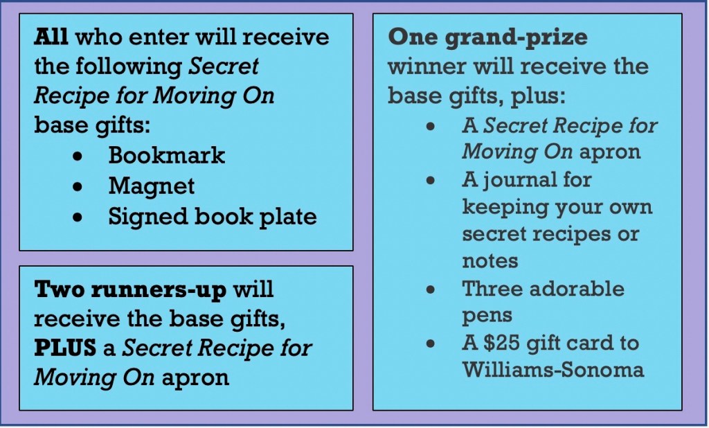 THE SECRET RECIPE FOR MOVING ON GIVEAWAY Share this: Share on X (Opens in new window) X Share on Facebook (Opens in new window) Facebook Like Loading...